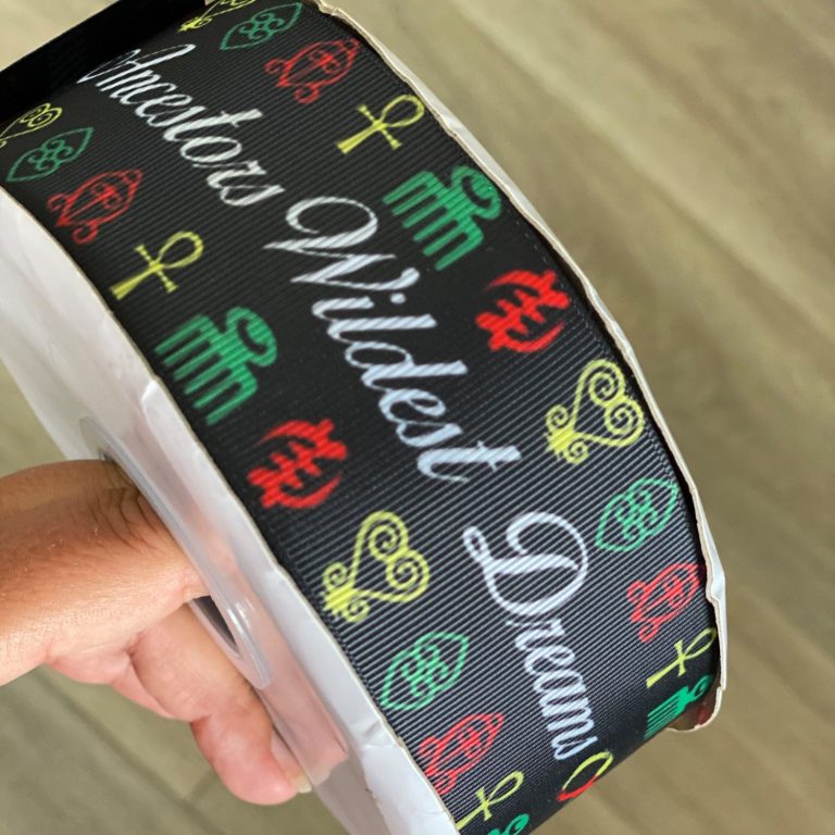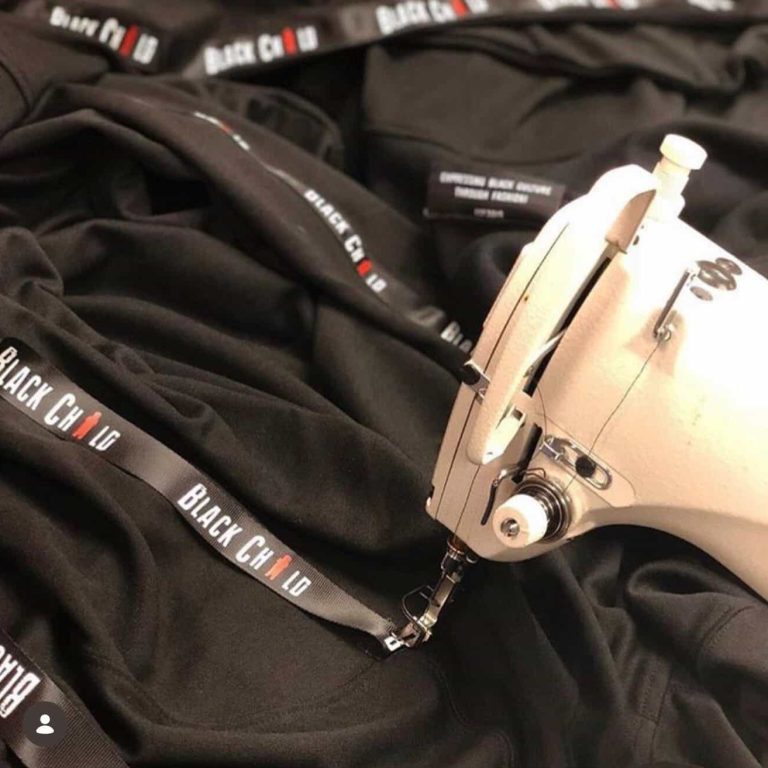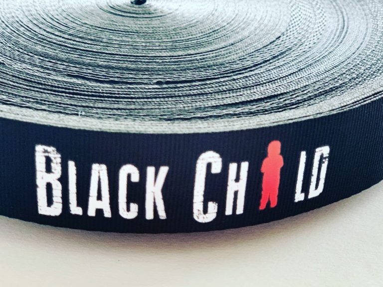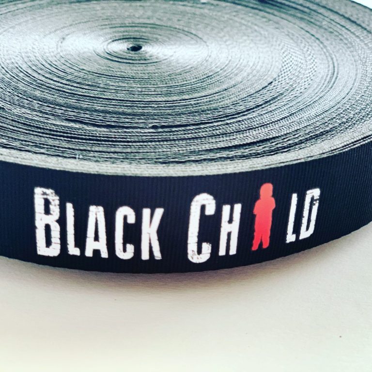 Meet Black Child Clothing! They found us online and entrusted us to silk screen print grosgrain black ribbon that they then incorporated into their clothing line. The opportunities are endless with custom ribbon. Check them out!
